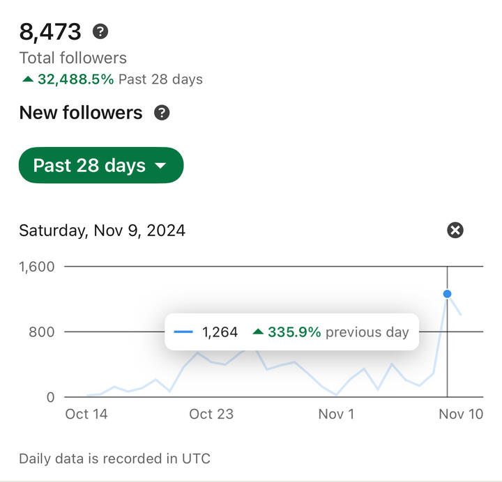 The strategies I share inside the Leads Letter reveal how I'm able to grow my LinkedIn following by 100-250 (and sometimes up to 1,000) high-quality followers every day.