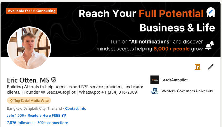 The Leads Letter is an independent resource designed to help individuals achieve organic growth on LinkedIn. This page is not affiliated with, endorsed by, or in any way associated with LinkedIn Corporation. LinkedIn™ is a registered trademark of LinkedIn Corporation and/or its affiliates. All product and company names are trademarks™ or registered® trademarks of their respective holders. Use of them does not imply any affiliation or endorsement by them.
